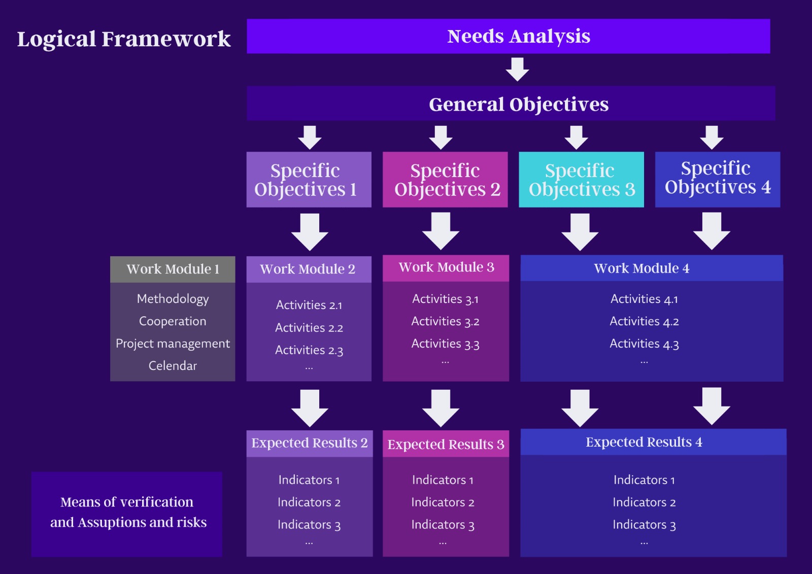 The Logical Framework (LogFrame) is a project management tool used to design, implement, monitor, and evaluate projects in a structured and coherent manner. It provides a visual representation of a project’s key components, ensuring alignment between objectives, activities, expected results, and impact. This methodology is widely used in European-funded projects to enhance clarity, transparency, and accountability in project implementation.